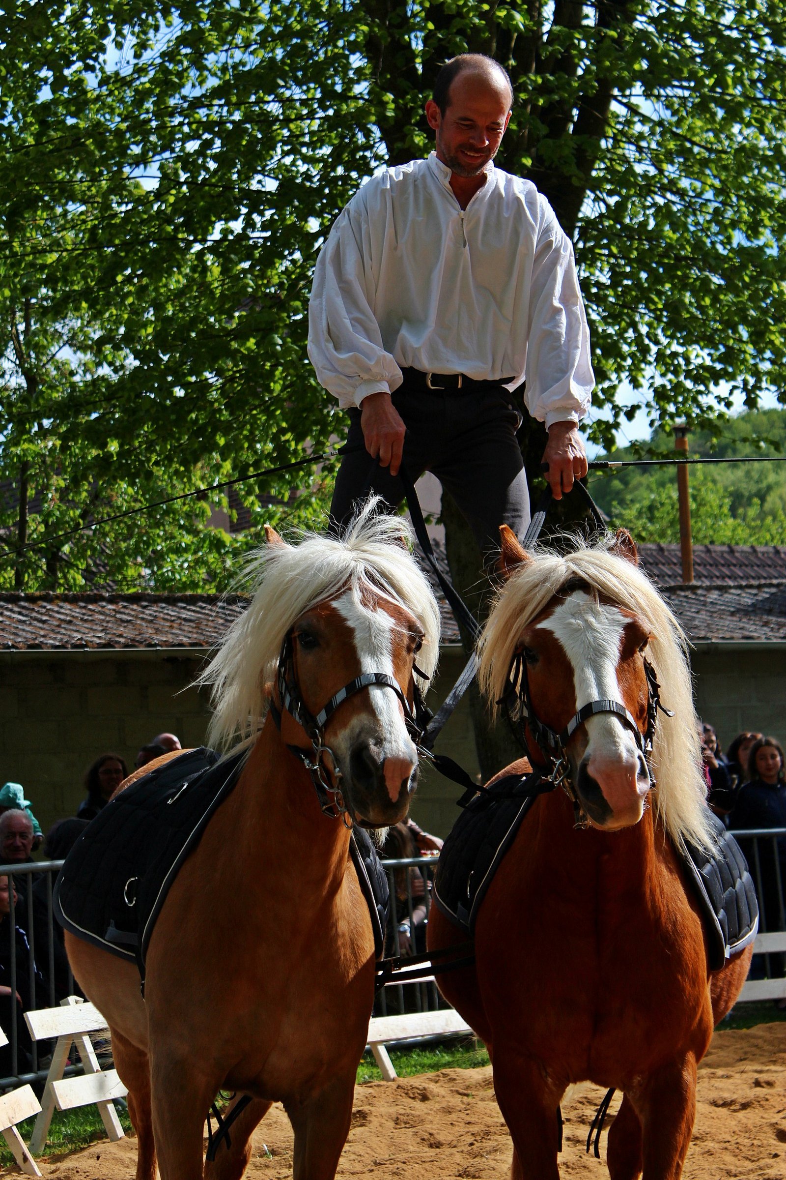 La « poste hongroise » est un classique des spectacles équestres : le cascadeur se tient debout sur deux chevaux au galop. A l’origine, il s’agirait d’une méthode utilisée par les paysans hongrois pour ramener leurs chevaux des champs après le travail. Et comme on ne peut pas s’asseoir sur deux chevaux à la fois, on se met debout ! Du temps de gagné ! De nos jours, la poste hongroise est pratiquée par de nombreux artistes de spectacle, avec deux chevaux, mais parfois quatre, six ou même davantage.